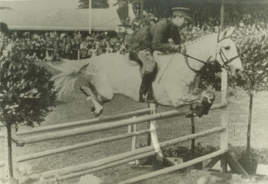 | Nr. inwentarzowy: MŁJ-XVI 1639 / 00 / 041 opis: Belg por. Paul Mondron na siwym koniu Ibrahim w skoku przez okser ozdobiony drzewkami w donicach. Rząd sportowy, ogłowie wędzidłowe, wytok. W tle licznie zgromadzona publiczność.czas powstania - daty graniczne: 1929-01-01 - 1939-08-31miejsce: jeden z europejskich hipodromówosoby: Belg por. Paul Mondrontworzywo: papier fotograficzny, matowytechnika: odbitka żelatynowo-srebrowa z wydrukuzespół: album Clemensa Nagla Międzynarodowi artyści w jeździe przez przeszkodywymiary (wys. x szer.): 124 x 174 [mm] Koń: 1. Ibrahim