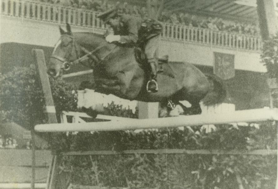 | Nr. inwentarzowy: MŁJ-XVI 1639 / 00 / 038 opis: Belg por. Poswick na koniu ciemnej maści Acrobate w skoku przez hyrdę ze stacjonatą. Rząd sportowy, ogłowie wędzidłowe. W tle piętrowe trybuny z publicznością i niewyraźnym herbem.czas powstania - daty graniczne: 1929-01-01 - 1939-08-31miejsce: jeden z europejskich hipodromówosoby: Belg por. Poswicktworzywo: papier fotograficzny, matowytechnika: odbitka żelatynowo-srebrowa z innej odbitkizespół: album Clemensa Nagla Międzynarodowi artyści w jeździe przez przeszkodywymiary (wys. x szer.): 123 x 174 [mm] Koń: 1. Acrobate