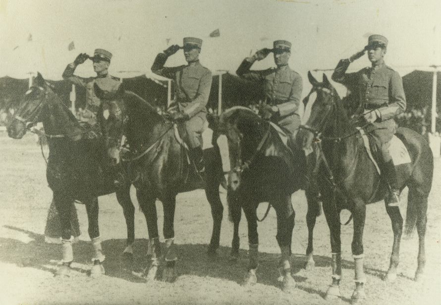 | Nr. inwentarzowy: MŁJ-XVI 1639 / 00 / 049 opis: Ekipa Szwajcarii podczas prezentacji - salutujący jeźdźcy na koniach, od lewej: mjr Pierre de Muralt, por. Haecky, kpt. Dégallier, por. Hans Herbert Schwarzenbach. Konie w rzędach sportowych, wytoki, jasne potniki z numerami. Z tyłu jasno zadaszone trybuny z publicznością.czas powstania - daty graniczne: 1929-01-01 - 1939-08-31miejsce: jeden z europejskich hipodromówosoby: Szwajcarzy: mjr Pierre de Muralt, por. Haecky, kpt. Dégallier, por. Hans Herbert Schwarzenbachtworzywo: papier fotograficzny, matowytechnika: odbitka żelatynowo-srebrowa z innej odbitkizespół: album Clemensa Nagla Międzynarodowi artyści w jeździe przez przeszkodywymiary (wys. x szer.): 125 x 175 [mm]