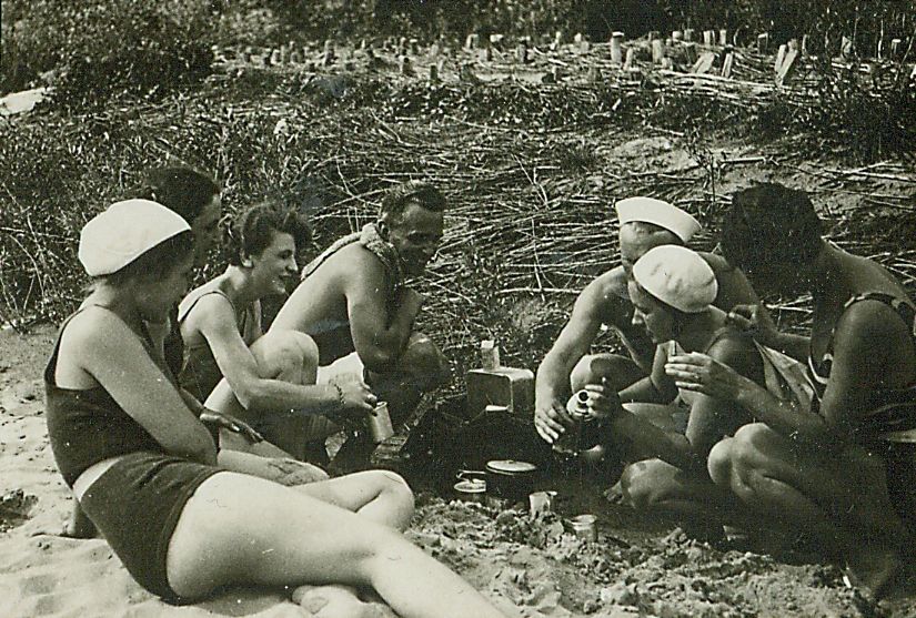 | Nr. inwentarzowy: MŁJ-XVI 1745 / 00 / 076 opis: Wycieczka Wisłą. Na plaży leży i siedzi kilka osób w letnich, skąpych strojach. W jasnych beretach siostry Leskie - Wanda i Anna.data: czerwiecczas powstania - daty graniczne: 1932-06-01 - 1932-06-30miejsce: rzeka Wisłaosoby: Wanda Leska, później Bohdanowicz (1908-1991), Anna (Anka) Leska, później Leska-Daab (1910-1998).tworzywo: papier fotograficzny, półbłyszczącytechnika: odbitka żelatynowo-srebrowa DOP, czarno-białazespół: album rodziny Leskichwymiary (wys. x szer.): 33 x 47 [mm]