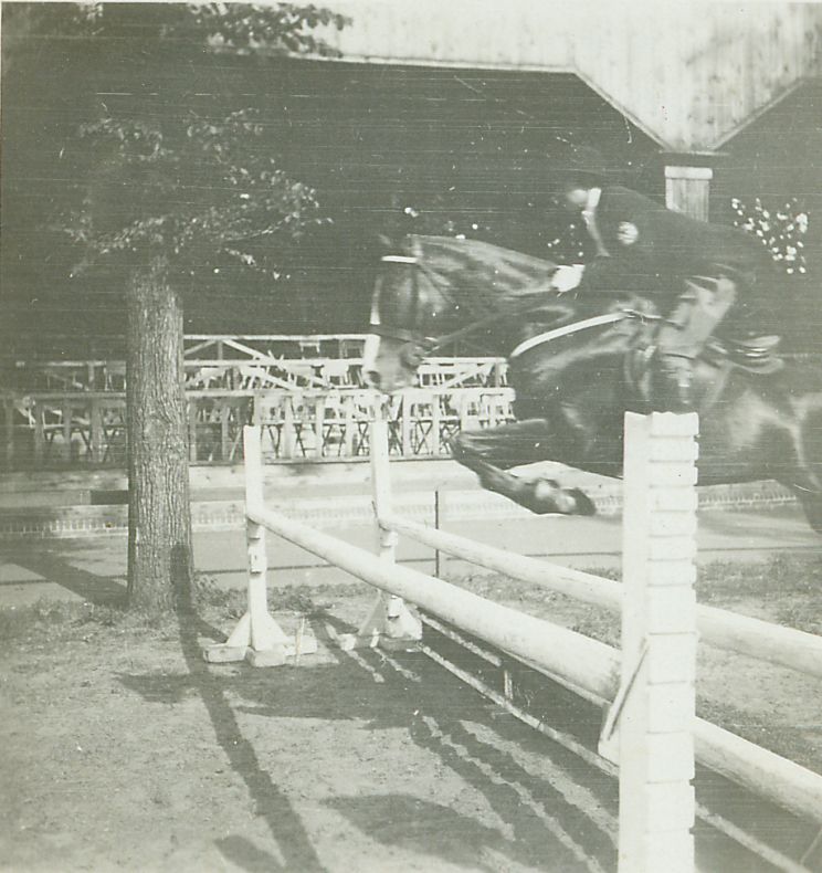 | Nr. inwentarzowy: MŁJ-XVI 1743 / 00 / 036 opis: Konkurs Wewnętrzny Rodziny Wojskowej. Anna Leska w skoku na ciemnej maści koniu Mandaryn. Amazonka w stroju jeździeckim (ciemny melonik i frak, jaśniejsze bryczesy). Przeszkoda - jasny okser. Przy przeszkodzie drzewo, w tle trybuny, drzewa.czas powstania - daty graniczne: 1930-06-01 - 1930-06-30miejsce: Warszawa, Łazienki, hipodromosoby: Anna Leska (1910-1998)inne nazwy własne: Klub Sportowy Rodziny Wojskowejtworzywo: papier fotograficzny, błyszczącytechnika: odbitka żelatynowo-srebrowa DOP, czarno-białazespół: album rodziny Leskichwymiary (wys. x szer.): 52 x 59 [mm] Koń: 1. Mandaryn, wałach, maść kasztanowata, ur. 1920 - hod. NN, wł. Niny Słaboszewicz; oprócz właścicielki dosiadała go Anna Leska