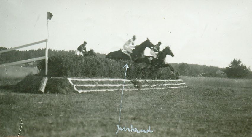 | Nr. inwentarzowy: MŁJ-XVI 1757 / 00 / 029 opis: Tor wyścigów konnych. Steeple-chase „Orpy” (gonitwa wygrana przez konia Ortel; wg opisu w albumie przez por. Stefana Gromnickiego, wg Wiadomości Wyścigowych przez por. Włodzimierza Korytkowskiego). Trzech jeźdźców na koniach na przeszkodzie - wale z żywopłotem. Najbliżej widza, w jasnym stroju wyścigowym por. Tomasz Mineyko na koniu Jaazband (4 miejsce).data: data rozgrywania steeple-chase Orpyczas powstania - daty graniczne: 1934-06-26 - 1934-06-26miejsce: Wilno, Pośpieszkaosoby: Por. Tomasz Mineyko ur. 1901 (w 1934 r. por. 1 p. uł.).tworzywo: papier fotograficzny, błyszczącytechnika: odbitka żelatynowo-srebrowa DOP, czarno-białazespół: album rodziny Bohdanowiczówwymiary (wys. x szer.): 59 x 109 [mm] Koń: 1. Jaazband, wałach, rasa: xx, maść kasztanowata - po Balthazar i Gryzelda, hod. M. Szeliskiego, wł. grono oficerów 1 p.u., w 1934 r. wystartował na torze w Wilnie w jednej gonitwie, dosiadał go por. Mineyko, na zdjęciu: 4. miejsce