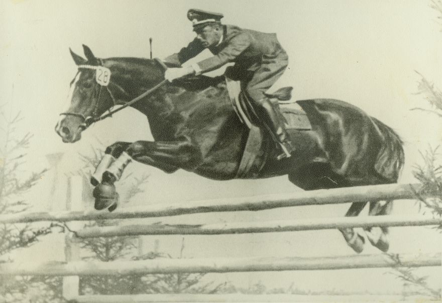 | Nr. inwentarzowy: MŁJ-XVI 1639 / 00 / 021 opis: Niemiec mjr Harald Momm na kasztanowatym koniu Baccarat w skoku przez okser z jasnych drągów (widać tylko górną część i szpilkowe drzewka). Koń w rzędzie sportowym, ogłowie wędzidłowe z numerem 28, kalosze.czas powstania - daty graniczne: 1929-01-01 - 1939-08-31osoby: Niemiec mjr Harald Mommtworzywo: papier fotograficzny, matowytechnika: odbitka żelatynowo-srebrowa z innej odbitkizespół: album Clemensa Nagla Międzynarodowi artyści w jeździe przez przeszkodywymiary (wys. x szer.): 124 x 173 [mm] Koń: 1. Baccarat, wałach, rasa: hanowerska, maść kasztanowata, ur. 1919 - ur. w Anglii