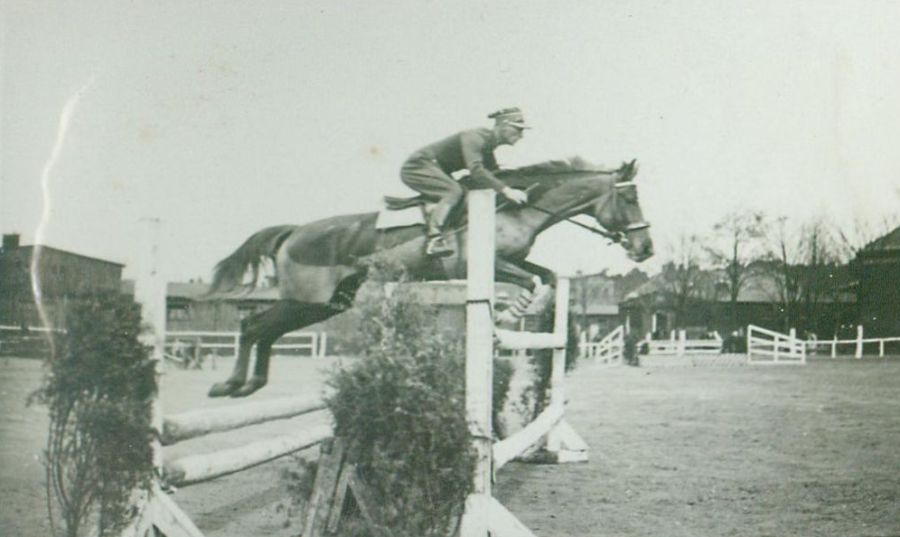 | Nr. inwentarzowy: MŁJ-XVI 1517 / 00 / 033 opis: por. Jan Mossakowski 1 p.s.k., skok przez double-barredata: wiosna 1933czas powstania - daty graniczne: 1933-03-01 - 1933-08-12miejsce: Polska, Grudziądz, C.W.K. [Centrum Wyszkolenia Kawalerii]osoby: por. Jan Mossakowski, uczestnik IX KIJK 15.10.1931-15.08.1932 i III WKIJK 15.10.1932-12.08.1933inne nazwy własne: IX Kurs Instruktorów Jazdy Konnej; III Wyższy Kurs Instruktorów Jazdy Konnejtworzywo: papier fotograficzny, błyszczącytechnika: odbitka żelatynowo-srebrowa DOP, czarno-białazespół: album rodziny Nieniewskichwymiary (wys. x szer.): 60 x 91 [mm]
