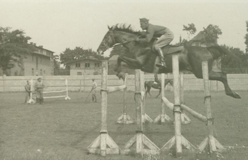 | Nr. inwentarzowy: MŁJ-XVI 1518 / 00 / 037 opis: kpt. Winchestern z USA, skok przez "kwadro-barre" , III Wyższy Kurs Instruktorów Jazdy Konnej [trwał od 15.10.1932]data: wiosna-lato 1933czas powstania - daty graniczne: 1933-03-01 - 1933-08-12miejsce: Polska, Grudziądz, C.W.K. [Centrum Wyszkolenia Kawalerii]osoby: kpt. Winchestern, uczestnik IX KIJK 15.10.1931-15.08.1932 i III WKIJK 15.10.1932-12.08.1933inne nazwy własne: IX Kurs Instruktorów Jazdy Konnej; III Wyższy Kurs Instruktorów Jazdy Konnej; inna pisownia: Winchestertworzywo: papier fotograficzny, błyszczącytechnika: odbitka żelatynowo-srebrowa DOP, czarno-białazespół: album rodziny Nieniewskichwymiary (wys. x szer.): 60 x 91 [mm]