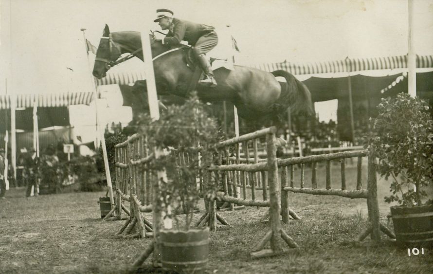 opis: mjr Michał Antoniewicz, 2 p.szw,. zawody, skok przez triple-barre na klaczy Orgja