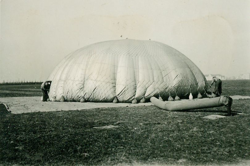 | Nr. inwentarzowy: MŁJ-XVI 1759 / 00 / 086 opis: Pompowanie balonu przed startem do przelotu na trasie Warszawa – Dębe Wielkie. Widać plandekę, a na niej do połowy wypełniony balon pod siatką, balast w workach, przewód doprowadzający, dwie osoby. W tle budynki. W albumie balon opisany jest jako "Gopło", jednak na innych zdjęciach widać fragmenty numerów i nazwy "Syrena" i to prawdopodobnie ten statek powietrzny: SP-ANC SYRENA, pojemność: 1200 m³, TYP – ZB-1, właściciel: Aeroklub Warszawski.czas powstania - daty graniczne: 1937-04-01 - 1937-04-30miejsce: Warszawa, Pole Mokotowskie, lotnisko mokotowskietworzywo: papier fotograficzny, błyszczącytechnika: odbitka żelatynowo-srebrowa DOP, czarno-białazespół: album rodziny Bohdanowiczówwymiary (wys. x szer.): 60 x 87 [mm]