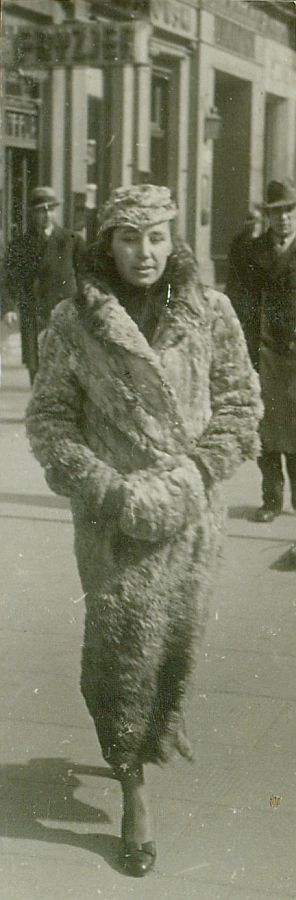 | Nr. inwentarzowy: MŁJ-XVI 1760 / 00 / 013 opis: Wanda Bohdanowiczowa idzie warszawską ulicą. Kobieta W futrze, futrzanej czapce, z futrzaną mufką, w ciemnych pantoflach. W tle przechodnie, reklama fryzjera..czas powstania - daty graniczne: 1937-04-01 - 1937-04-30miejsce: Warszawaosoby: Wanda Bohdanowicz 1908-1991 (z domu Leska, córka Juliusza Leskiego i Marii zd. Olszyńskiej, żona Michała Bohdanowicza).tworzywo: papier fotograficzny, błyszczącytechnika: odbitka żelatynowo-srebrowa DOP, czarno-białazespół: album rodziny Bohdanowiczówwymiary (wys. x szer.): 75 x 26 [mm]