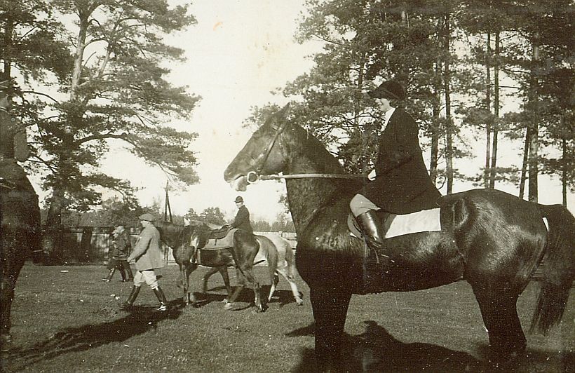 | Nr. inwentarzowy: MŁJ-XVI 1759 / 00 / 030 opis: Bieg św. Huberta w 4 Pułku Ułanów Zaniemeńskich. Po biegu. Krystyna Bohdanowicz stępuje na koniu Ibis. Amazonka w ciemnym, galowym stroju jeździeckim. Spocony koń w ogłowiu z nachrapnikiem polskim i siodle sportowym z jasnym potnikiem. Z tyłu inni uczestnicy niego - konno, z koniem w ręku, kibice. W tle drzewa.czas powstania - daty graniczne: 1935-11-03 - 1935-11-03miejsce: Wilno, Pośpieszkaosoby: Krystyna Bohdanowicz (Krysia Bohdanowiczówna, córka Jana Bohdanowicza i Marii "Maryni" zd. Cywińskiej, siostra Heleny i Michała).tworzywo: papier fotograficzny, błyszczącytechnika: odbitka żelatynowo-srebrowa DOP, czarno-białazespół: album rodziny Bohdanowiczówwymiary (wys. x szer.): 56 x 85 [mm] Koń: 1. Ibis - koń, na którym w 1935 r. Krystyna Bohdanowicz wystąpiła w biegu myśliwskim św. Huberta 4 p.u. w Wilnie