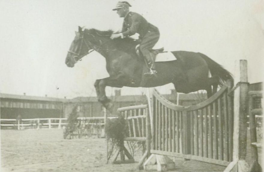 | Nr. inwentarzowy: MŁJ-XVI 1517 / 00 / 037 opis: por. Bronisław Korżon 3 p.s.k., skok przez bramkędata: wiosna 1933czas powstania - daty graniczne: 1933-03-01 - 1933-08-12miejsce: Polska, Grudziądz, C.W.K. [Centrum Wyszkolenia Kawalerii]osoby: por. Bronisław Korżon, uczestnik X KIJK 17.10.1932-12.08.1933 i IV WKIJK 15.10.1933-11.08.1934inne nazwy własne: X Kurs Instruktorów Jazdy Konnej; IV Wyższy Kurs Instruktorów Jazdy Konnejtworzywo: papier fotograficzny, błyszczącytechnika: odbitka żelatynowo-srebrowa DOP, czarno-białazespół: album rodziny Nieniewskichwymiary (wys. x szer.): 59 x 87 [mm]