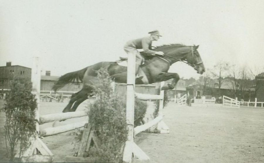 opis: por. Kazimierz Nieniewski 4 p.s.k. na wałachu Sawannah – skok przez double-barre