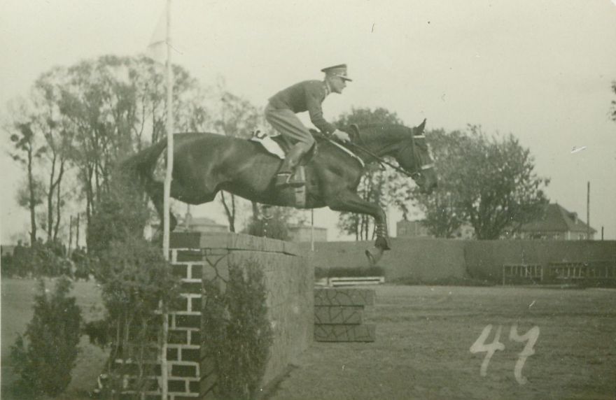 opis: por. Tadeusz Sokołowski 1 p.szw., skok przez mur